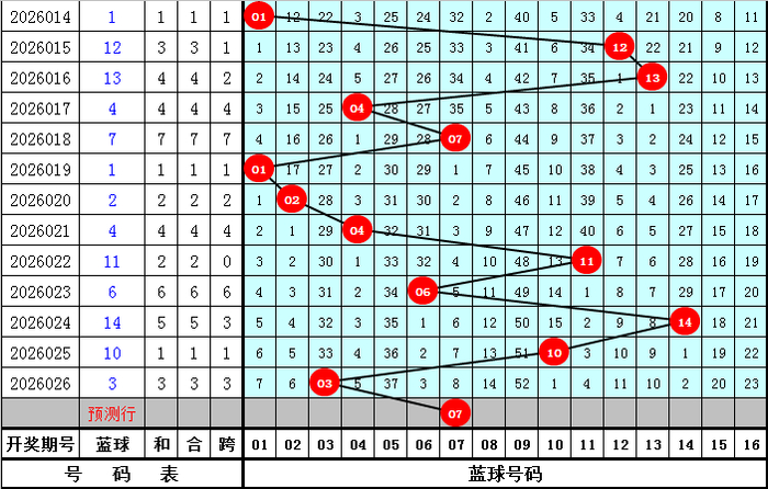 蓝球余数分析:最近7周星期四开出4个蓝球余数,相易蓝球余数彰着活跃,本周星期四排斥近期已出现的蓝球余数,精通温冷蓝球余数回补,柔顺蓝球07。