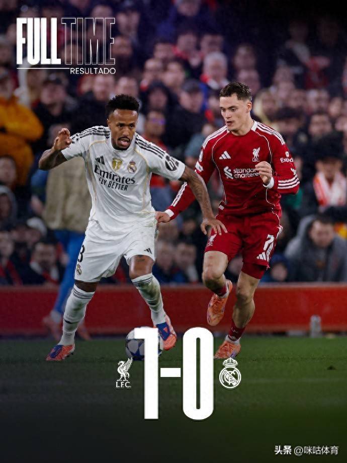 上半场索博斯洛伊失单刀,琼阿梅尼禁区内手球,VAR介入莫得判罚点球,库尔图瓦屡献神扑;下半场麦卡利斯特头球破门,最终利物浦1-0皇马,后者吃到本赛季欧冠首败。