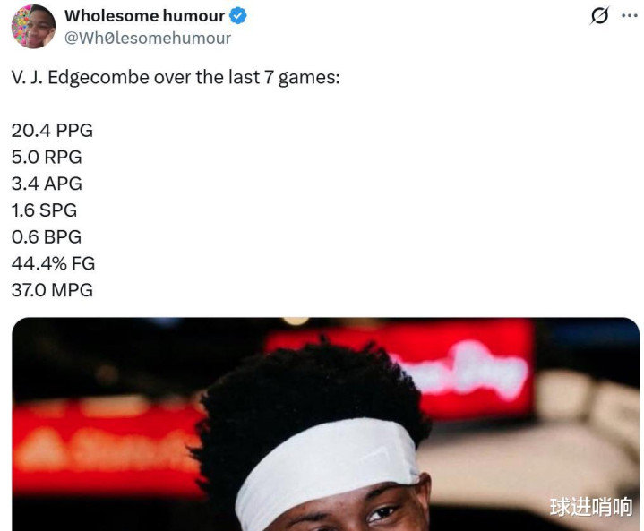 在上一场小节+加时专揽16分,而且掷中大腹黑三分绝杀率队取胜后,76东谈主新科探花VJ埃奇库姆面临与状元郎弗拉格的赛季二番战接续火热发达。
