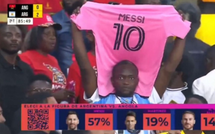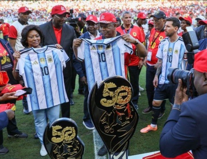 安哥拉总统挑升带上整体家东说念主来到现场见证梅西的饰演。赛后,他带着家东说念主走入球场,与梅西互动。梅西向总统救援了一件阿根廷球衣,后者也回赠了一件安哥拉的球衣。